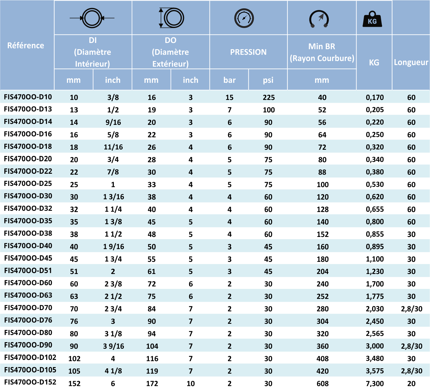 Large gamme de tuyaux flexibles en caoutchouc et thermoplastiques pour le passage de substances solides, liquides, gazeux et de produits chimiques même corrosifs. Des solutions spécifiques pour des pressions et des températures basses et hautes.
